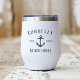Diese coolen personalisierten Strandweinknöpfe zeigen Ihren Familiennamen in Marineblau mit dem Jahr fest und einer nautischen Ankerillustrierung.