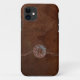 Hübscher iPhone 5 Fall, mit Grafiken eines braunen antiken Hintergrundes des prägeartigen Leders des Blickes. Zusätzliche Grafiken eines verrosteten Stacheldrahts läuft über den Fall, mit einem verrosteten schauenden runden Medaillon, in der Mitte. Personifizieren Sie das braune Buchstabemonogramm, auf dem Medaillon, zum Anzug Ihr Bedarf.