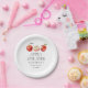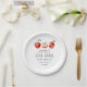 Süßes und rustikales Apfelmotiv Brautparty Papier Platte mit Aquarellbildern von Apfelfrüchten. Im Text steht "Appley immer danach".