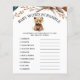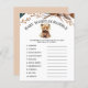 Mit unserem "Rustic Bear Theme Baby Shower Word Scramble Game" können Sie die Baby Dusche und Spielfreude in die Babydusche bringen. Die Gäste werden viel Spaß haben, die Liste der Wörter auf dieser Karte auszufüllen, die alle mit Babys zu tun haben, die sie zuerst entschlüsseln können! Holen Sie sich noch heute Ihre und schaffen Sie unvergessliche Erinnerungen! Lösung: 1. Formel 2.Pazifer 3.Baby-Monitor 4.Rocking-Stuhl 5.sudle 6.diaper Tombola 7.Gummi-Ducky 8.stroller 9.pladies 10.eosines