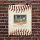 Rustikales, Baseball-Design mit Fotovorlage, optionaler Titel, Name und Jersey-Nummer. Baseballrote Spitze auf rustikal weißem Hintergrund.
