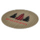 Die rustikale Bauernhausgestaltung umfasst ein Trio von Evergreen Silhouetten, eines in rotem und schwarzem Büffel kariert, das "Frohe Weihnachten" in festlichem Rot und einen Vintag gestreiften Hintergrund