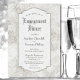 Eine elegante rustikale hellgraue geschnitzte Verlobung Dinner Einladung.