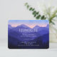 Dieses schlichte, minimalistische und moderne Hochzeitsdesign zeichnet sich durch einen modernen Schriftart gegen eine verträumte Darstellung einer blauen Berglandschaft aus. Es wird empfohlen, die Karte mit einem weißen Tintenstift auszufüllen.