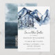 Rustikale Blaue Gebirgsfarbe Save the Date - Unsere Einladung zeigt eine herrliche, wasserfarbene Bergwelt mit Kiefernbäumen. Save the Date ist Teil einer Sammlung.