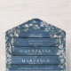 Eine einladende Hochzeitseinladung mit einer schönen Blumenkaskade, eleganten Typografien und Monogramm-Initialen auf einem Hintergrund von rustikal blauen Holzpaneelen. Die Einladung enthält eine perforierte RSVP-Karte mit Ihrem Hochzeitswebseiten QR Code und Details. Entwickelt von Thisisnotme©