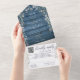 Rustikales blaues Holz Blumengrün QR Code Hochzeit All In One Einladung