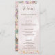 Genießen Sie Ihren Empfang mit dem Rustic Boho Floral Wedding Menu. Diese Karte zeigt elegante botanische Blume vor einem traumhaften, rätselhaften Hintergrund und zeichnet sich durch ihren rustikalen böhmischen Charme aus. Ideal für Hochzeitsfeiern im Frühling oder im Sommer für Hochzeitsfeiern, ist es Teil der passenden Rustic Boho Floral Wedding Collection, die Hochzeitseinladungen beinhaltet, die Daten, RSVP-Karten, Umzäunungskarten, Programme, Sitzkarten, große Hochzeitshintergründe und vieles mehr. Genießen Sie das kulinarische Erlebnis mit diesem geschmackvoll gestalteten Menü, das Ihre gesamte Hochzeitssaison ergänzt.