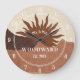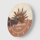 Eine rustikale boho moderne Terracotta Sonne mit Monogramm Hochzeit frisch vermählten Wanduhr mit Datum eingerichtet.