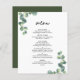 Das Rustikale Botanische Eukalyptus Greenery Wedding Menu ist ein wunderschön gestaltetes Stück, das rustikale, waldbedeckte oder gartenbezogene Hochzeiten perfekt ergänzt. Die Speisekarte mit sanfter Eukalyptusgrün und einer gepflegten, modernen Einrichtung verleiht Ihrem Empfang eine Touch natürlicher Eleganz. Seine erdigen Töne und das botanische Design schaffen eine ruhige und einladende Atmosphäre, ideal für Paare, die die inspirierten Details der Natur schätzen. Auf Zazzle können Sie ganz einfach Ihre eigenen Speisen zubereiten, was es zu einer praktischen und stilvollen Ergänzung Ihrer Hochzeitsdekoration macht, die die Gäste bewundern werden.
