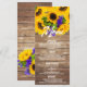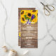 Ein modernes, rustikales braunes Holzdesign mit stilvollem Sommer-Design beinhaltet eine trendige Sommersonnenblume mit weißer, handgeschriebener Typografie. Diese Karte für Hochzeitsmenüs ist der perfekte Ausdruck für jede Braut- und Bräutigam-Veranstaltung. Passen Sie dieses Design mit Ihren Details an. Alle Designs sind gedruckt.