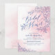 Elegante moderne Kalligraphie-Brautparty-Karte mit rustikalem Blumendesign in Marineblau auf weichem, rosa Aquarell-Hintergrund, ideal für moderne rustikale Hochzeiten oder Frühjahrsheirat im Abend. Sehen Sie sich alle passenden Stücke in der Sammlung unten an.