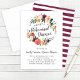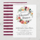 Stilvolle Hochzeitsfeier mit einer rustikalen Blume von Sommer- und Herbstfarben, Rose, Dahlien, Blume aus Pfirsichen und Grünpflanzen, in einer herrlichen Herbstpalette aus bordeauxrot, goldgelb, pfirsichfarben, rosa, rot und grün. Personalisieren Sie den eleganten bordeauxfarbenen und dunkelgrauen Text für Ihre Veranstaltung. Ein koordinierendes weinrot gestreiftes Muster zieht die Rückseite der Karte hoch.