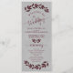 Dieses wunderschöne Hochzeitsprogramm besticht durch ein elegantes Design mit handgemalten Blätter in Bordeaux- oder Maronfarben auf einem grauen marmorierten Hintergrund. Die Titel sind in extravaganter Skriptkalligraphie geschrieben, und es gibt Platz für Ihre Zeremonie und Hochzeitsfeier Details, sowie ein kurzes Dankeschön für Ihren Gast. Ein wunderbarer Weg, um Ihre Freunde und Familie zu Ihrer Hochzeitsfeier zu begrüßen.