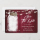 Rustikale Bordeaux-Hochzeit bewahrt die Dattelkarte mit einem Maurerkirsch und verspannten Herzen auf einem Holzboden mit Saitenleuchten. Einfach personalisieren Sie diese romantische burgundische Hochzeit speichern Sie das Datum online. Matching Artikel zur Verfügung, um diese burgundische Hochzeit zu ergänzen speichern Sie das Datum.