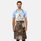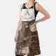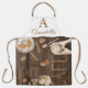 Diese charmante Schürze besticht durch ein Café-Shopthema, bei dem sich Kaffeetrinker an einem rustikalen Holztisch treffen. Im unteren Teil befindet sich ein Holzhintergrund mit verschiedenen Bildern im Café-Stil. Die Bilder sind in Aquarellmalerei-Stil, warmes und rustikales Design gedruckt. Gebäck mit Besteck, Zimt und Kaffeebohnen werden auf den Tisch gelegt. Ein Beispielname und ein Monogramm-Initial werden in einem beigen Schriftart über dem oberen Teil gedruckt.