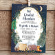 Rustikale Paare duschen mit einer niedlichen Darstellung von Waldtieren mit ihrem Zelt-Camping in Bergen und Wäldern, einem Überlagern von Goldstars und Mond in einem Nachthimmel, und "Unser Bestes Abenteuer" und den Namen von Mutter und Vater in einem dunkelblauen Schriftzeichen um Mitternacht.
