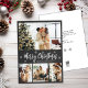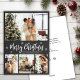 Rustikale Minimal Chalkboard Snowflake 4 Foto Collage Frohe Weihnachts Script Holiday Card. Dieses festliche, minimalistische, (4) vier Foto Ferienkarte Vorlage zeigt eine hübsche Foto Collage, etwas Schneeflocke und sagt Frohe Weihnachten! Der "Frohe Weihnachten"-Grußtext ist in einem schönen, weißen, handgeschriebenen Typografie-Schriftart auf dunkelgrauem Chalkboard oder schwarzer Tafel-Hintergrund geschrieben. Auf der Rückseite mit der Grußtextanzeige auf weiß. Hübsche Grußkarte für Ihre Familie und Freunde in dieser Weihnachts- und Feiertagssaison.