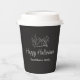 Rustikaler Fall glücklich Halloween Party Paper Cup, mit einem einfachen Kürbis auf einem Kreidebrett Hintergrund. Mit anpassbarer Typografie-Schrift fügen Sie Ihren eigenen Text hinzu. Eine lustige Ergänzung zu Ihrer Herbstfeier und Unterhaltung.