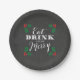 Feiern Sie die Urlaubssaison mit festlichen "Essen, Trinken und Merry"-Tellern. Diese wunderschönen Weihnachtsbauten-Teller sind mit trendiger Typografie, rustikalem Chalkboard-Hintergrund und roten und grünen Heiligen Beeren ausgestattet. Die stilvollen Teller aus Papier eignen sich hervorragend für Party und Abendessen. Um den Tellern ein individuelleres Gefühl zu geben, können Sie Text und mehr hinzufügen, indem Sie auf den Knopf Anpassen klicken.