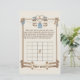 Holen Sie Ihre Gäste mit dieser bezaubernden Baby Bingo Geschenkkarte ein unterhaltsames, interaktives Element in Ihre Babydusche. Dieses charmante Design eignet sich perfekt für ein rustikales, Western- oder Cowboy/Cowgirl-Fest. Die Grenze umfasst einen malerischen Holzzaun und eine Wäscheleine, die mit Babyartikeln zum Thema süße Western aufgereiht ist, darunter: Denim Dungarees (Overalls) Cowboy Boots Ein Cowboy, der einen klassischen Teddy mit Bandana Rocking Rocks trägt Die Anleitung ist einfach: Bevor die Geschenke geöffnet werden, füllen die Gäste jeden Platz mit einem Geschenk, von dem sie denken, dass die Mutter zu sein wird. Wenn die Geschenke geöffnet werden, markieren sie ihre richtigen Vermutungen. Der Erste, der fünf in Folge bekommt, gewinnt einen Preis! Details: Thema: Western, Rustikal, Bauernhof, Cowboy, Cowgirl Colors: Neutral, Beige, Braun, Hellblau, Denim Ein charmantes Keepake Design für jeden Elternteil.