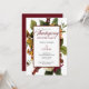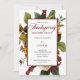 Ein ätherisches Blumenstrauß in den Farben Winterweiß, Gold, Orange und Dunkelrot mit Grün auf weißem, duskygem Gold und dunkelrotem Tuch auf weißem Hintergrund lädt zu einem unvergesslichen rustikalen "Erntedank Dinner" mit elegantem Anlass ein. Die Rückseite weist einen dunkelroten Hintergrund auf. Composite Design von Holiday Hearts Designs (Rechte vorbehalten).