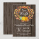 Rustikales Erntedank Dinner Party Herbst Einladung. Rustikaler Holzhintergrund. Kürbis Verlasse. Freundschaft. Iss Drink und sei dankbar. Für weitere Anpassungen klicken Sie bitte auf die Schaltfläche "Anpassen" und verwenden Sie unser Designwerkzeug, um diese Vorlage zu ändern.