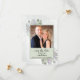 Diese Hochzeit speichern Sie die Dattelkarte ist einfach, rustikal, elegant und schön. Es zeigt Ihr Foto in einem hellgrün gefärbten Rahmen, umgeben von einem Bienenstock aus handgemalten Aquarell Eukalyptus-Blätter und Lavendel-Blume auf einem blauen Marmorboden aus hellem Stahl. Der Titel lautet: Save the Date in laky Skriptkalligrafie mit Platz für die Namen des Paares, das Datum und den Ort. Auf der Rückseite ist ein kleiner Strauß mit einem weißen Bogen verbunden. Eine wunderbare Art, Ihre Freunde und Familie über Ihre kommende Hochzeit lassen.