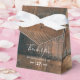 Dieses Design bietet einen rustikalen Holzputz-Hintergrund mit dem Foto Ihres Ehepaares. Der rustikal-braune Holzboden wird durch den weißen Text und Ihr persönliches Foto ergänzt, das auf dem Holzboden mit rustikalen, rostenden Bolzen befestigt ist. Die Brauntöne des Holzkorns schaffen ein rustikales Landhausgefühl wie Garten. Elegantes Hochzeitsgunst-Box-Design mit modernen Elementen. Auch die passenden Hochzeitseinladungen und andere Schreibwaren sind verfügbar.