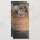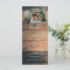 Dieses Design bietet einen rustikalen Holzputz-Hintergrund mit dem Foto Ihres Ehepaares. Der rustikal-braune Holzboden wird durch den weißen Text und Ihr persönliches Foto ergänzt, das auf dem Holzboden mit rustikalen, rostenden Bolzen befestigt ist. Die Brauntöne des Holzkorns schaffen ein rustikales Landhausgefühl wie Garten. Elegantes Hochzeitsmenü-Kartendesign mit modernen Elementen. Auch die passenden Hochzeitseinladungen und andere Schreibwaren sind verfügbar.