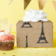 Diese eleganten, rustikalen Pariser Ausrüstungsbeschreibungen, die der Eiffelturm im Schwarzen in einem schicken Muster vereinbarte und ein Leinwandblickmuster als der Hintergrund. Sehr französisches Vintages!