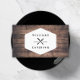 Ein Vintages Abzeichen mit gekreuzter Gabel- und Messerlogo in Verbindung mit Ihrem Namen oder Firmennamen wird zu einem Markenzeichen dieses personalisierten Visitenkartendesigns. Set auf einem braunen Hintergrund aus Holz für ein rustikales Ambiente. Ideal für Catering, Koch, Restaurants, LKWs, Feinschmecker und vieles mehr. © 1201AM