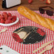 Rustikales glattes Laternenglühen Rote Rosen aus B Pappteller