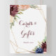 Dieses rustikale Gold verlasse Blumenkarten und Geschenkschild, das sich perfekt für eine moderne Hochzeit oder ein modernes Brautparty eignet. Das Design ist mit handgezeichnet Aquarell-lila, Marineblau, Rot, Bordeaux, Marineblau-Blume, grünen und goldenen Blätter, die einen eleganten geometrischen Rahmen schmücken. Machen Sie die Textzeile am unteren Rand des Zeichens Ihren eigenen, indem Sie das Datum, die Namen der Braut und Bräutigam oder eine kurze Nachricht wie "Danke". Dieses Schild kann eine Hochzeit, jedes Ereignis oder Party ergänzen.