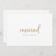 Dieses rustikale goldene Schriftzeichen ist ideal für eine Hochzeit in einem Land. Die Karte ist zweiseitig (beidseitig gedruckt). Das schlichte und moderne Design in Gold und Weiß zeichnet sich durch eine einzigartige handgeschriebene Kalligraphie aus, die in einem zeitgenössischen minimalistischen Boho-Stil gehalten ist. Anpassbar in jeder Farbe. Behalt das Design minimal und simpel, wie es ist, oder personalisiere es durch Hinzufügen von eigenen Grafiken und Kunstwerken. Benutzen Sie diese Karten, um Stühle oder Tische bei Ihrer Hochzeitsfeier, Empfang oder jeder Veranstaltung zu reservieren.