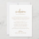Diese rustikale Goldschrift Begrüßungsbrieftour und Kartenkarten sind perfekt für eine Begrüßungstasche der Hochzeit in Urlaubsort. Das schlichte und moderne Design in Gold und Weiß zeichnet sich durch eine einzigartige handgeschriebene Kalligraphie aus, die in einem zeitgenössischen minimalistischen Boho-Stil gehalten ist. Anpassbar in jeder Farbe. Behalt das Design minimal und simpel, wie es ist, oder personalisiere es durch Hinzufügen von eigenen Grafiken und Kunstwerken. Auf der Vorderseite der Karte finden Sie einen Begrüßungsbrief und eine Reiseroute. Geben Sie eine Karte Ihres Resorts mit den wichtigsten Orten auf der Rückseite der Karte an.
