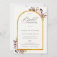 Rustikale Herbstwasserfarbe botanisches Waldblatt und geblümter goldener Bogen Rahmen, Brautdusche Einladung. Elegante Typografie Design Stilvorlage mit koordinierter schwarzer Farbsicherung.