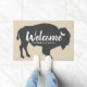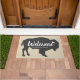 Graue Büffel-Silhouettefußmatte mit dem Wort "Willkommen" im weißen Text sowie im Ihrem Familiennamen. Fügen Sie etwas Art und Spaß Ihrem Eingang mit dieser rustikalen mutigen Fußmatte hinzu. Erhalten Sie diesen Charme des Mittelwestens mit dieser eleganten Fußmatte des Landes.