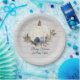 "Rustikales graues Holzfußballschuh-Baby-Duschpapier Plate & Party Decor." Weich verblasste graue, verwitterte Scheunenholz-Schiffskörper mit marineblauen Blumenelementen und goldfarbenen Glitzer-Sternen, die um den weißen Kürbis wirbeln. Das Design wird ergänzt durch die grüne Farbe der herbstmuffigen Blätter der Erde. Handgemalt in Aquarell von Audrey Jeanne Roberts, international lizenzierter Künstler. Vollständiges Set zur Koordination verfügbar. Urheberrecht.