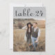 Elegante, maßgeschneiderte Hochzeitstischkarten können mit einem Foto der Verlobung der Braut und Bräutigam personalisiert werden. Das Design zeichnet sich durch den holzgrauen Text moderner Skripttexte auf einem rustikalen, hellgrauen Leinenhintergrund aus. Zum Anpassen: Geben Sie in die Tischnummer, klicken Sie auf "Ändern" durch das Standard-Foto, um Ihr eigenes Foto hochzuladen, und fügen Sie diese individuelle Tischnummer Karte in Ihren Warenkorb. Wiederholen Sie die Schritte für alle Tischnummern, die Sie benötigen.