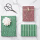 Set von 3 modernen, aber rustikal Viktorianisch aussehen Weihnachtsfeiertagsverpackungspapiere. Jedes ist ein anderes Muster. Es gibt dunkel-hellgrüne Streifen, Kranberry- und Lila-Blumenschrift, und ein rautenförmiges Muster mit innen liegenden Wirbel.