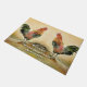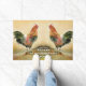 Natte bienvenue de ferme avec 2 coqs colorés vous joignant pour saluer vos invités.