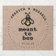 Gastgeschenk Hochzeit Schaumweinetiketten mit klassischem Typografie "Meant to Bee" Design in verschiedenen Hochzeitsfarben. Die Kunst einer Honigbiene mit gelbem Herzen. Personalisieren Sie mit den Namen der Braut und des Bräutigams und dem Hochzeitstag.