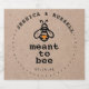 Gastgeschenk Hochzeit Schaumweinetiketten mit klassischem Typografie "Meant to Bee" Design in verschiedenen Hochzeitsfarben. Die Kunst einer Honigbiene mit gelbem Herzen. Personalisieren Sie mit den Namen der Braut und des Bräutigams und dem Hochzeitstag.