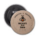 Hochzeitskunst mit gebranntem rotem Herz und kreisförmigem Text auf einem Flaschenöffner aus Kraftpapier.