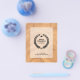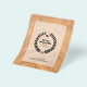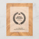 Bild von hellbraunem Holz mit einem schwarzen Lorbeerkranz als Logo.