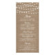 Rustikales Hochzeitmenü für Burlap-String-Lichter Werbekarte