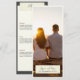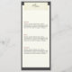 Feiern Sie Ihren besonderen Tag mit unserem wunderschön gestalteten rustikalen Hochzeitsmenü, das zum Anzug unserer eleganten rustikalen Hochzeitssuite konzipiert wurde. Dieses Menü verfügt über ein individuell anpassbares Foto auf der Vorderseite, umgeben von einem hellgelben Rahmen, der einen altertümlichen weißen Effekt erzeugt. Ein reizendes, klebbandförmiges Rechteck in der unteren Mitte des Fotos hält die Namen der Ehepaare in einem eleganten Schriftart und ihren Hochzeitstag in einem Vintagen Schreibmaschinenstil-Schriftart. Auf der Rückseite ergänzt ein dunkler Hintergrund ein hellgelbes Rechteck, in dem sich das gesamte Hochzeitsmenü im Schreibmaschinen-Schriftart befindet. Das Banddesign mit dem Titel "Menü" erscheint oben in diesem Rechteck, was eine reizvolle Illusion schafft, dass das Band das Papier mit den Informationen auf einer rustikalen Tafel hält.