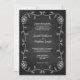 Rustikales Chaletbrett Hochzeitseinladungen mit Rand von Sonnenblumen und Weinreben, auf einem schwarzen Chalkboard Hintergrund. Niedliches handgezeichnetes Kreidebild ist perfekt für Ihre rustikale Themenhochzeit. Holen Sie sich die passenden Calkboard Hochzeit RSVP Karten.