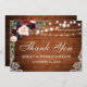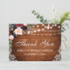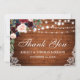 Rustic Wedding Wood Watercolor Burgundy Marsala Blue Floral String Lights Lace Danke Karte